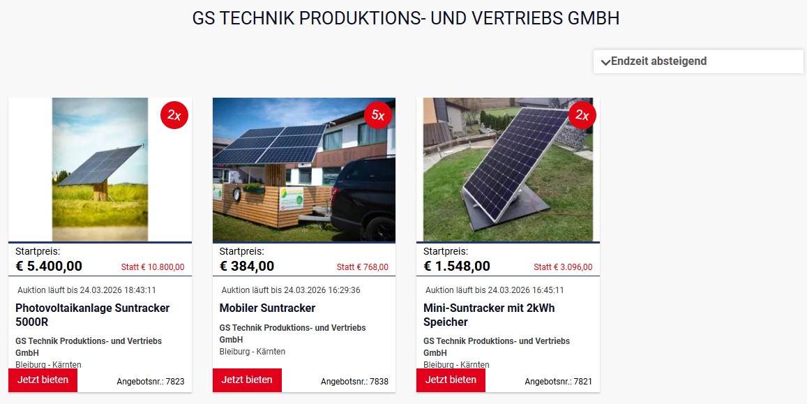 Ein Minisuntracker mit einem 2kWh Speicher – Zuschlag am 24. März um 16:45 Uhr.