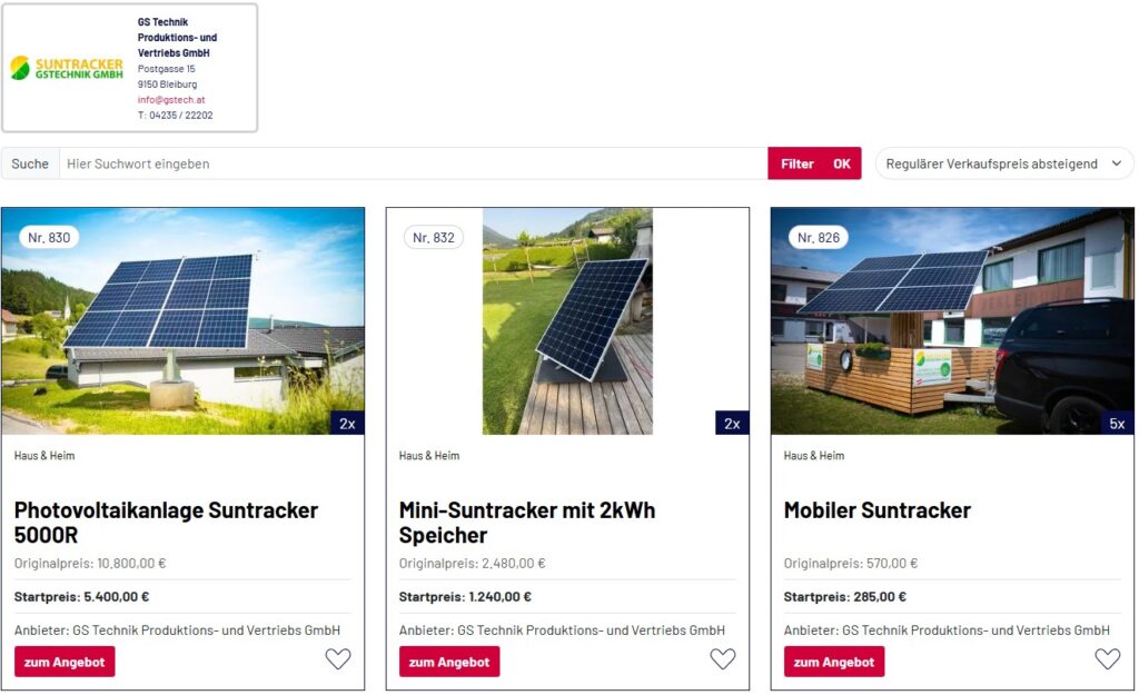 Ein Minisuntracker mit einem 2kWh Speicher – Zuschlag am 11. Dezember um 19:10 Uhr.