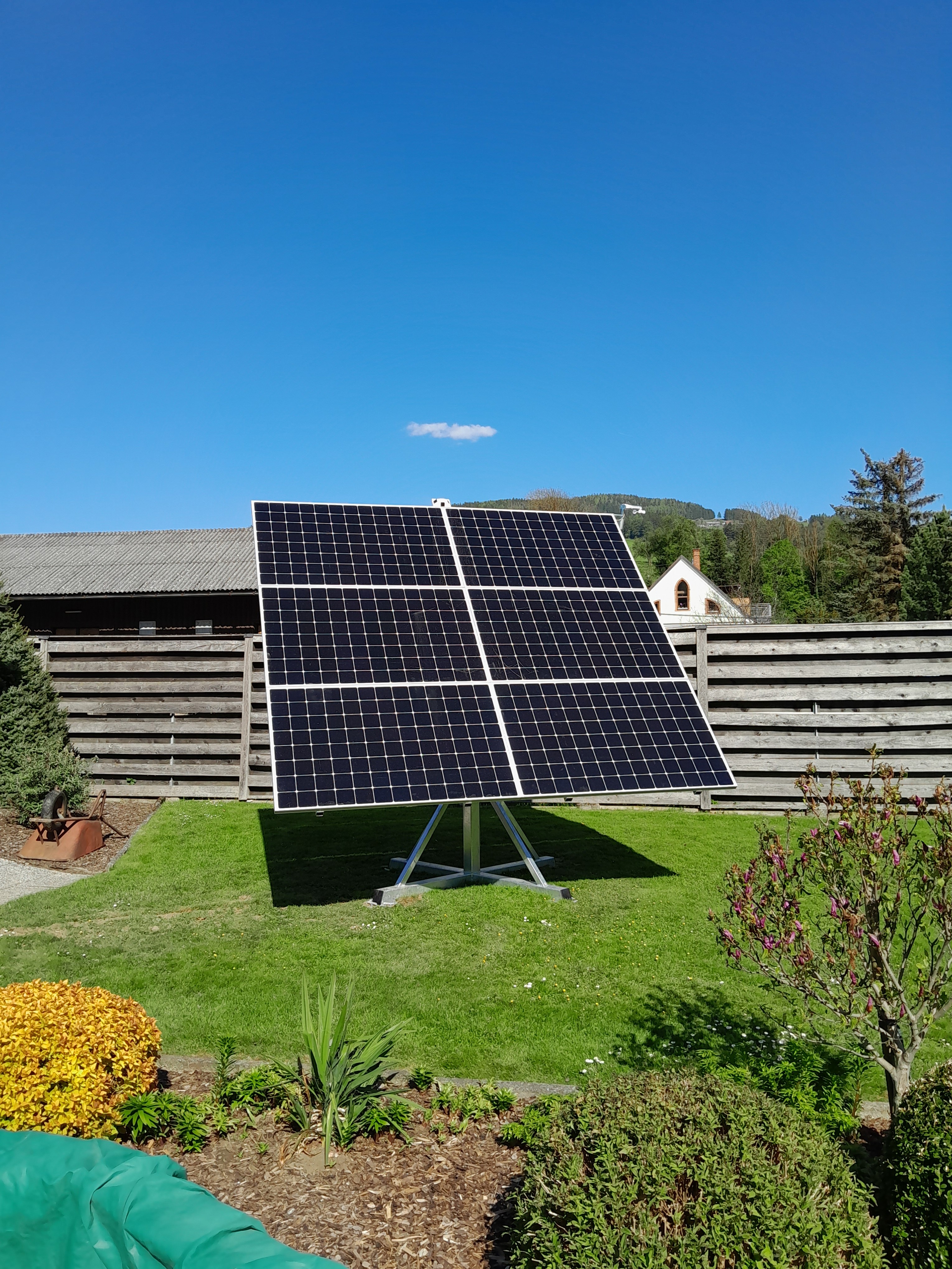 Montiert wurde ein Sonnenstromkraftwerk mit einem Suntracker 4000R mit Erdnägel und ein Energiespeicher Fronius & BYD Battery Box Premium HVM mit 11,00kWh nutzbarer Speicherkapazität mit automatischer 3-phasiger Notstromfunktion. Perfekt Integriert passt ein Suntracker in jeden Garten!
