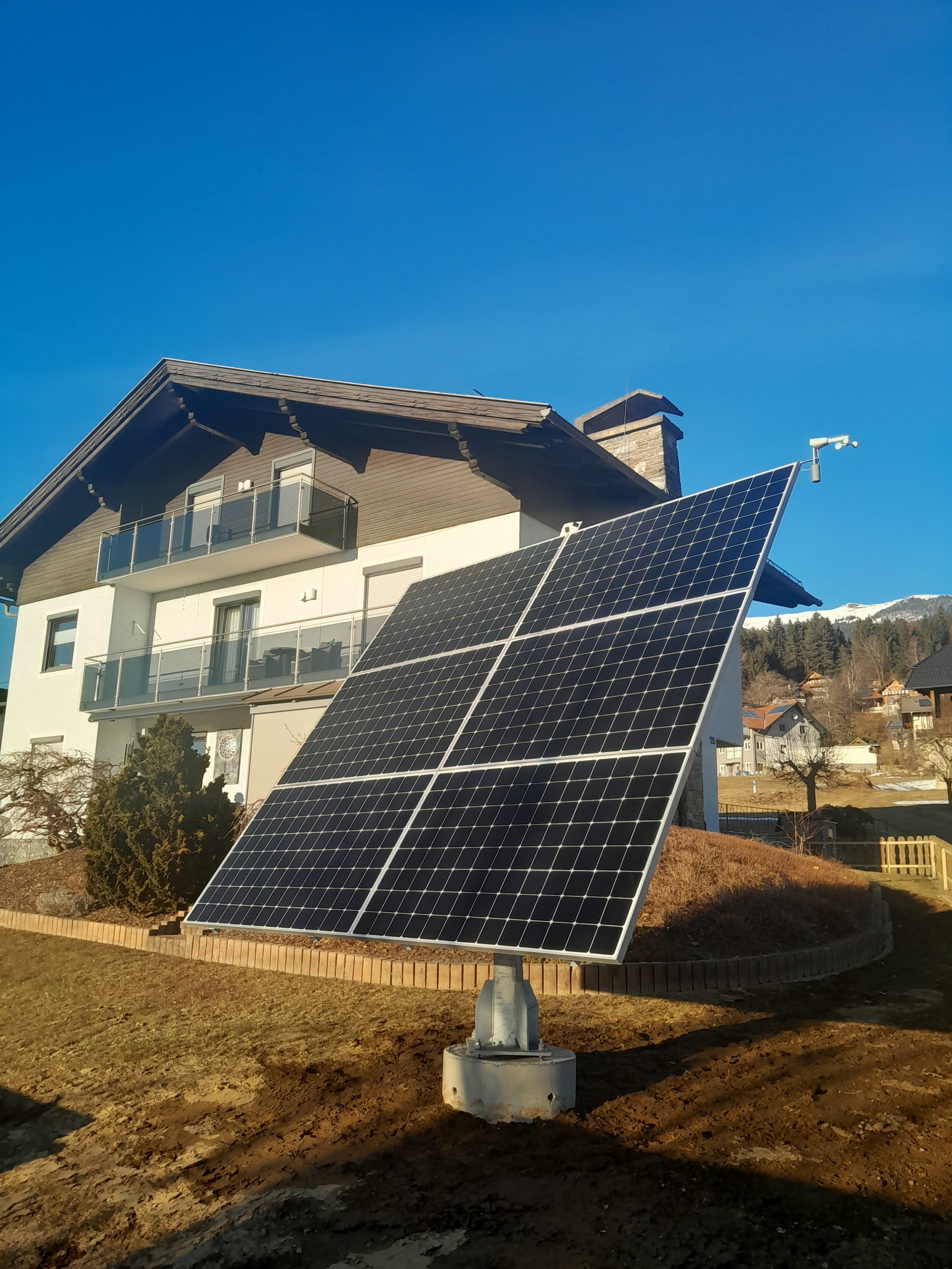 Montiert wurde ein Sonnenstromkraftwerk mit einem Suntracker 4000R auf einem Punktfundament. Zum Laden von Elektroautos wurde ein Fronius Wattpilot GO 11kW verbaut. Alles zeitgerecht schlüsselfertig ausgeführt.