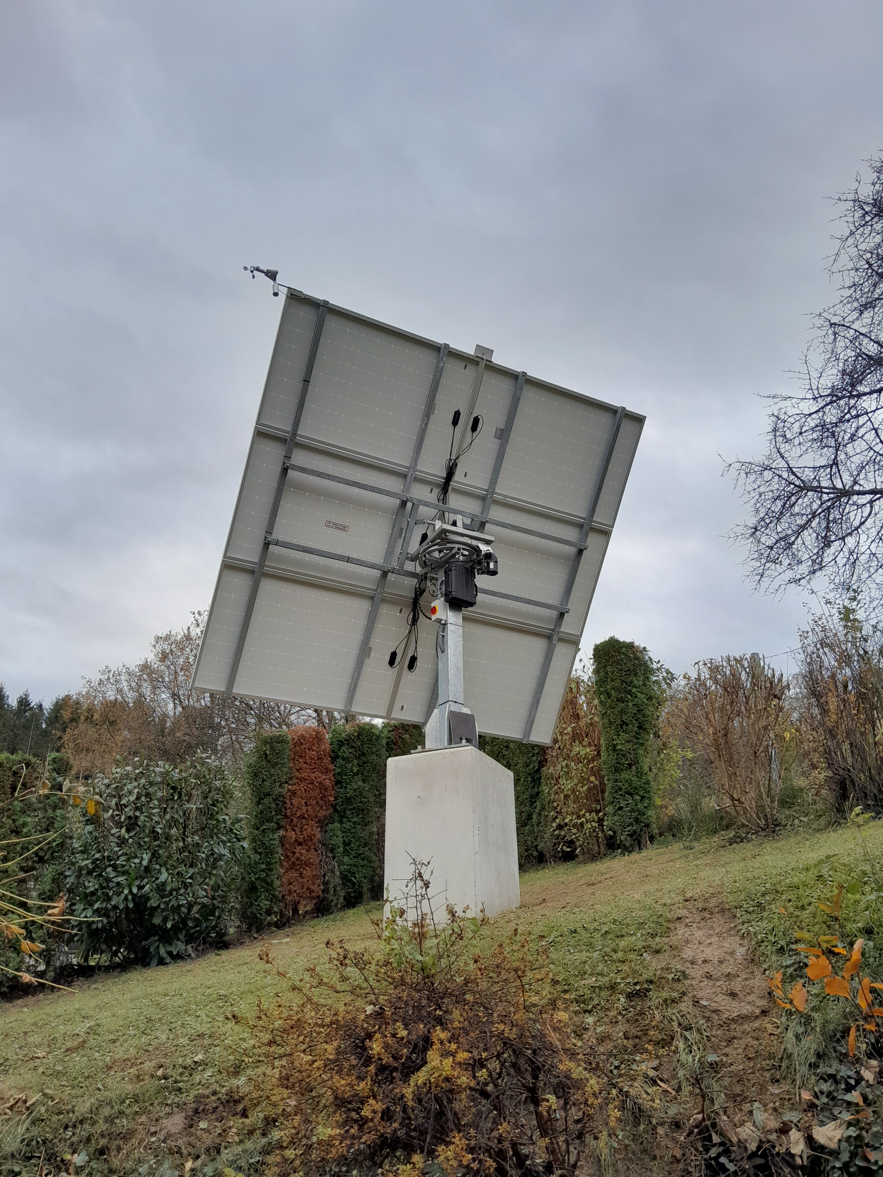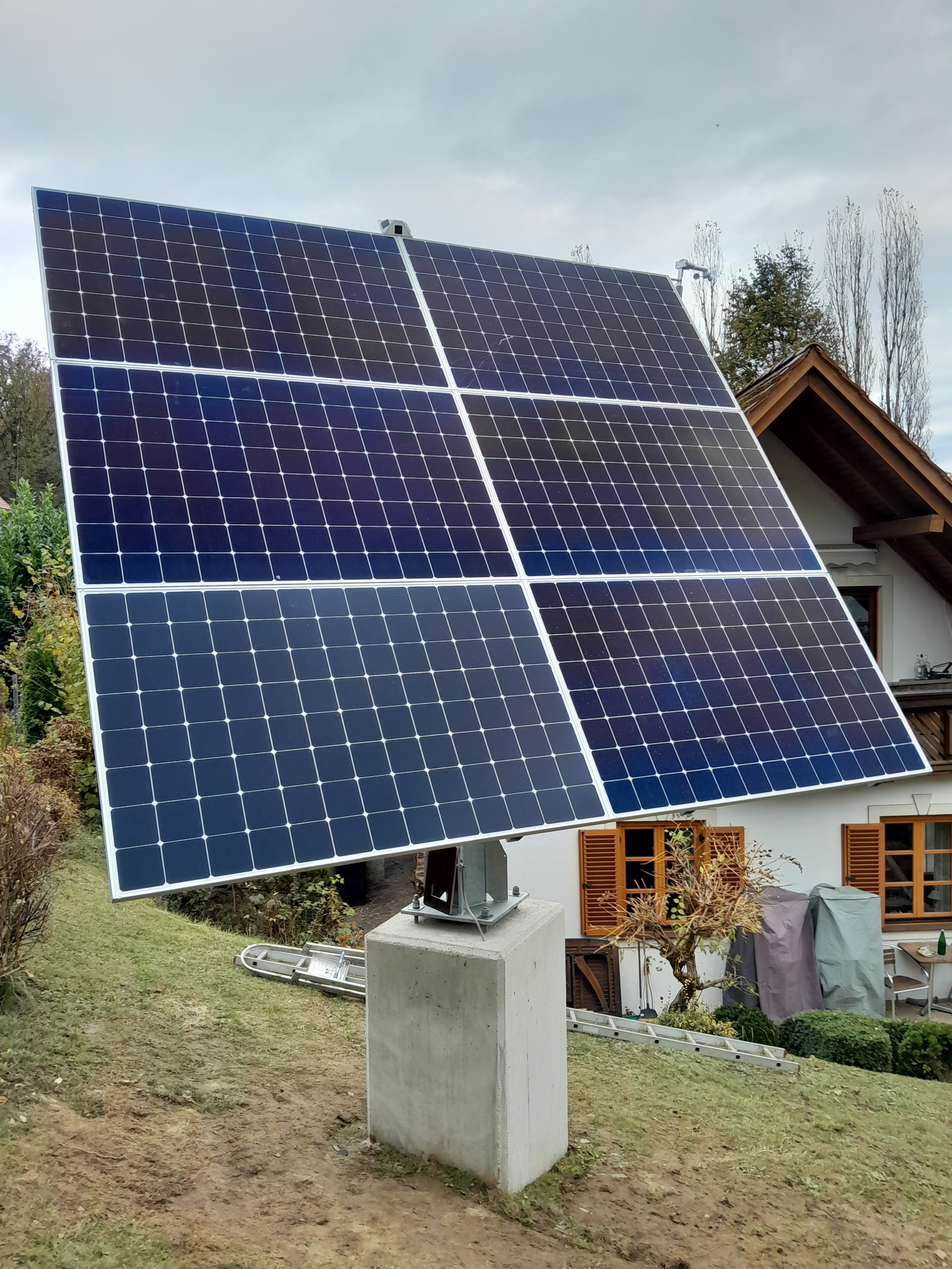 Montiert wurde ein Sonnenstromkraftwerk mit einem Suntracker 4000R auf einem Punktfundament mit einem Energiespeicher Fronius & BYD  Battery Box Premium HVM mit 11,00kWh nutzbarer Speicherkapazität mit automatischer 3-phasiger Notstromfunktion. Alles zeitgerecht schlüsselfertig ausgeführt. Damit wird der Kunde Stromselbstversorger und ist auch für einen Blackout bestens vorbereitet.