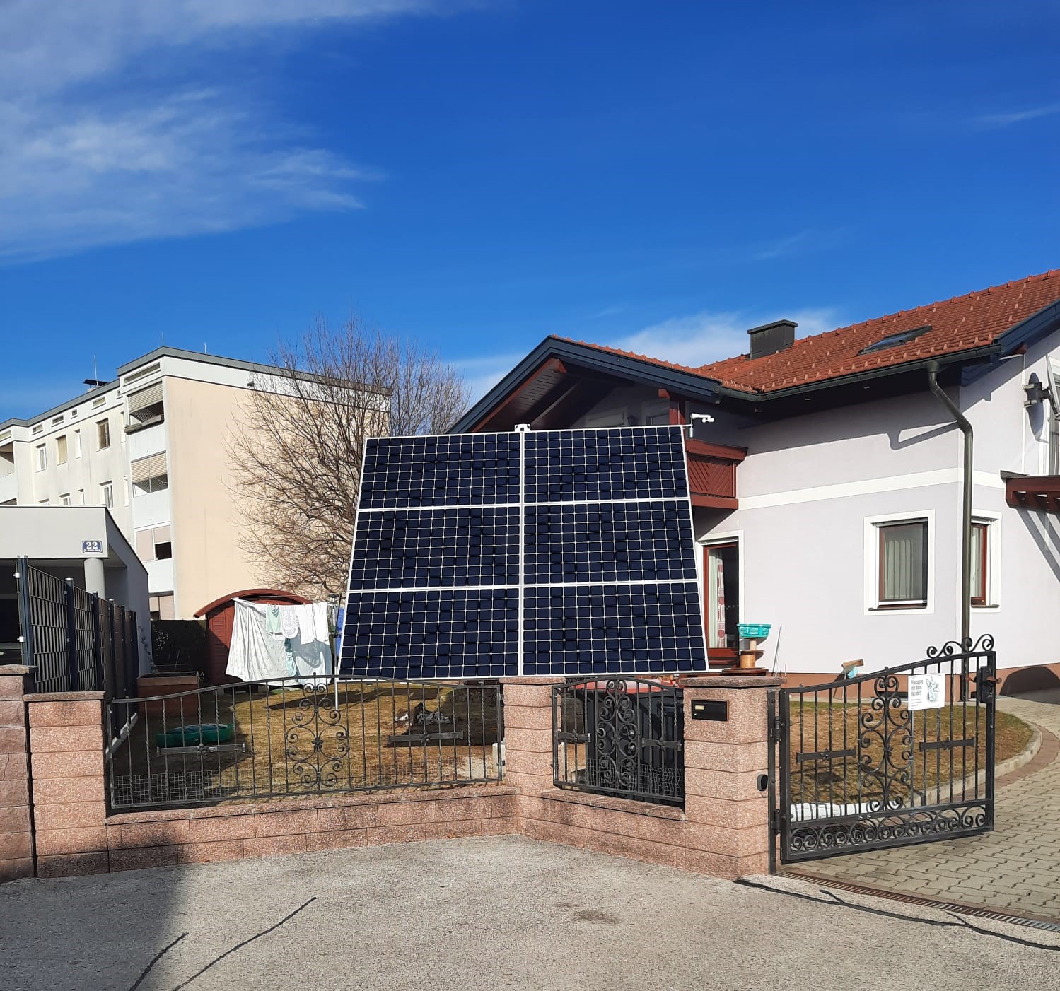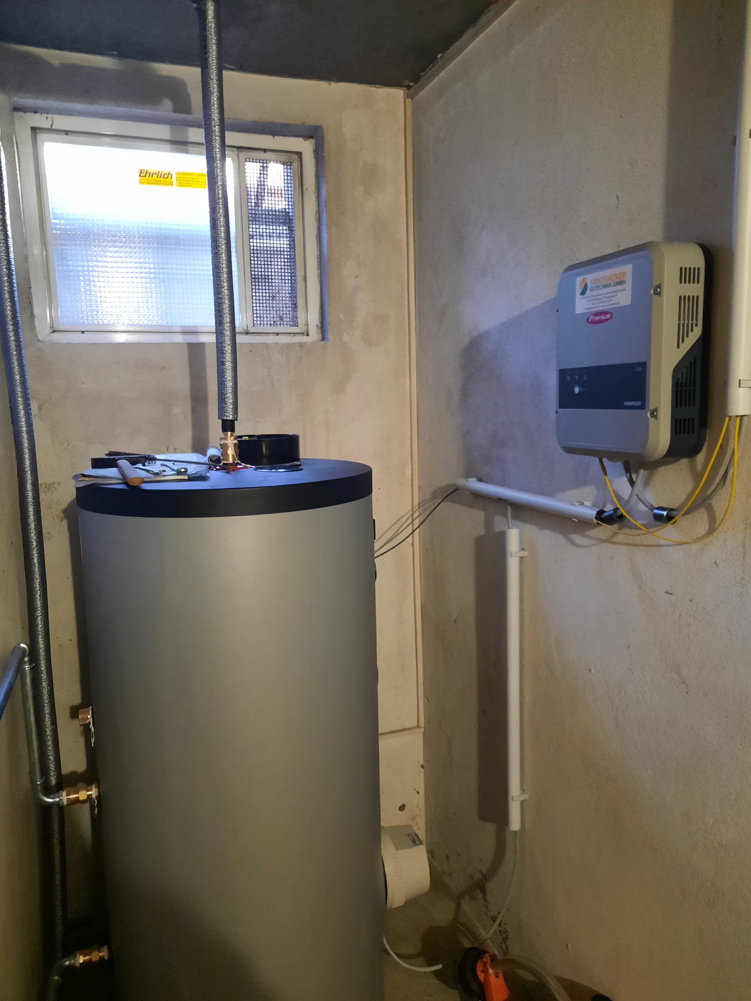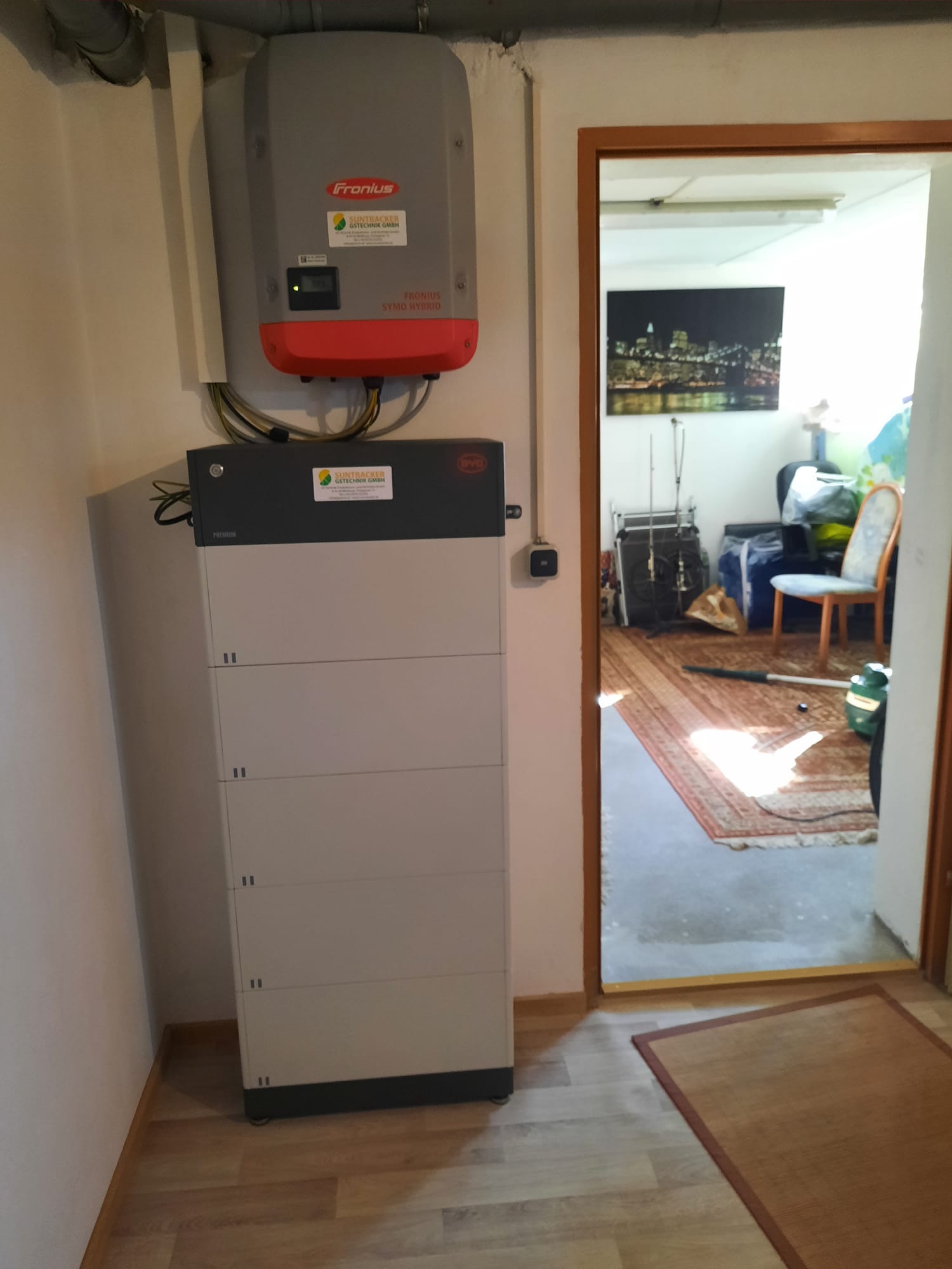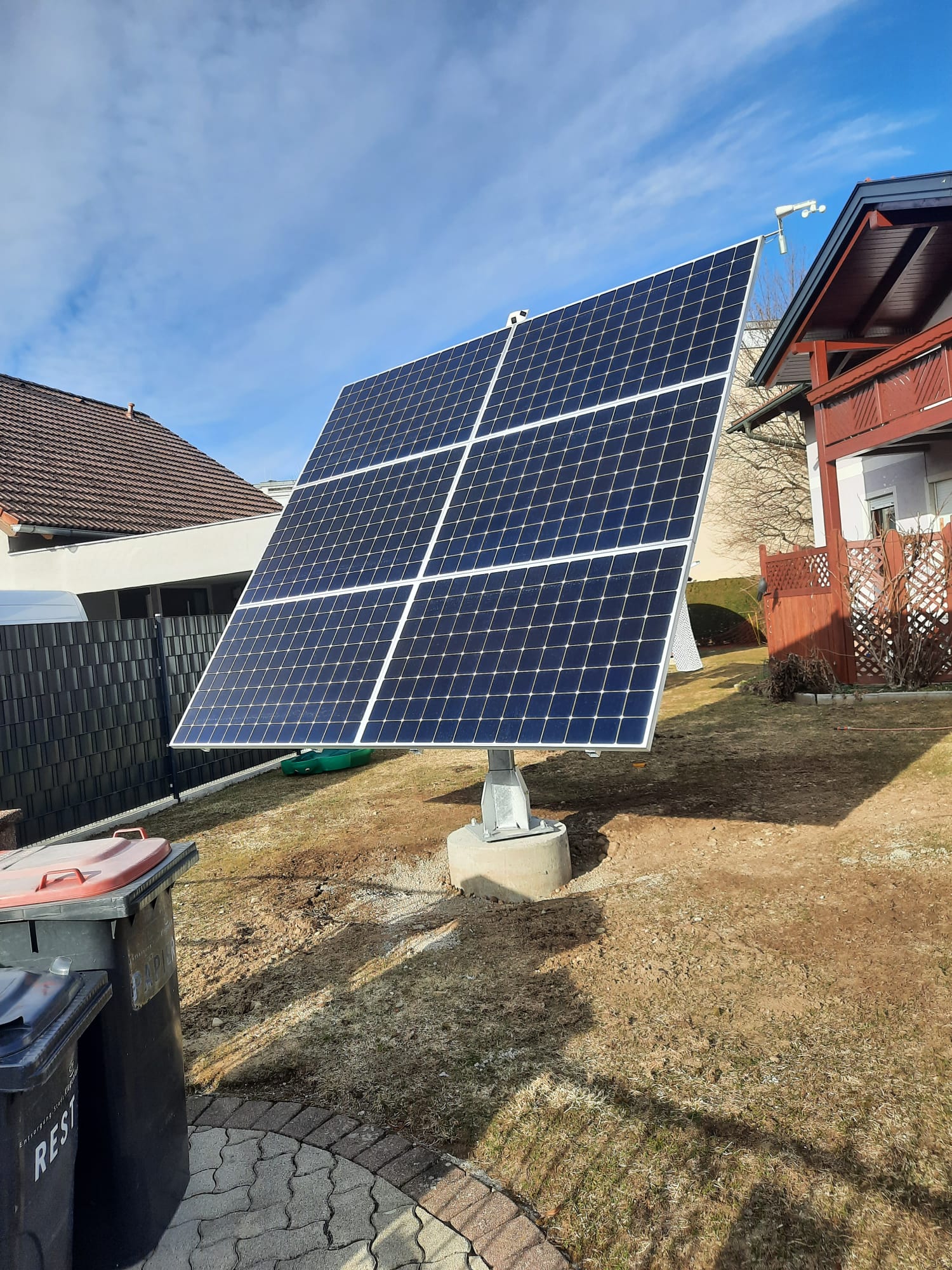 Montiert wurde ein Suntracker 4000R auf einem Punktfundament mit zusätzlichem Energiespeicher Fronius & BYD Battery Box Premium HVM mit 13,80kWh nutzbarer Speicherkapazität und automatischer 3-phasiger Notstromfunktion. Zusätzlich wurde ein Ohmpilot für die Warmwasseraufbereitung installiert. Damit wird der Kunde Stromselbstversorger.
