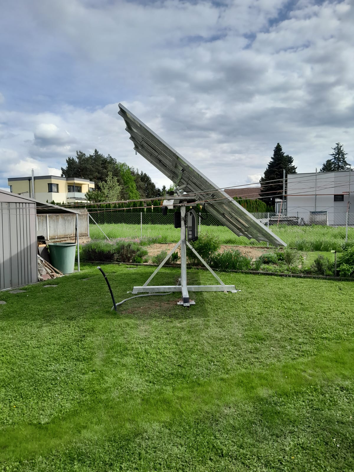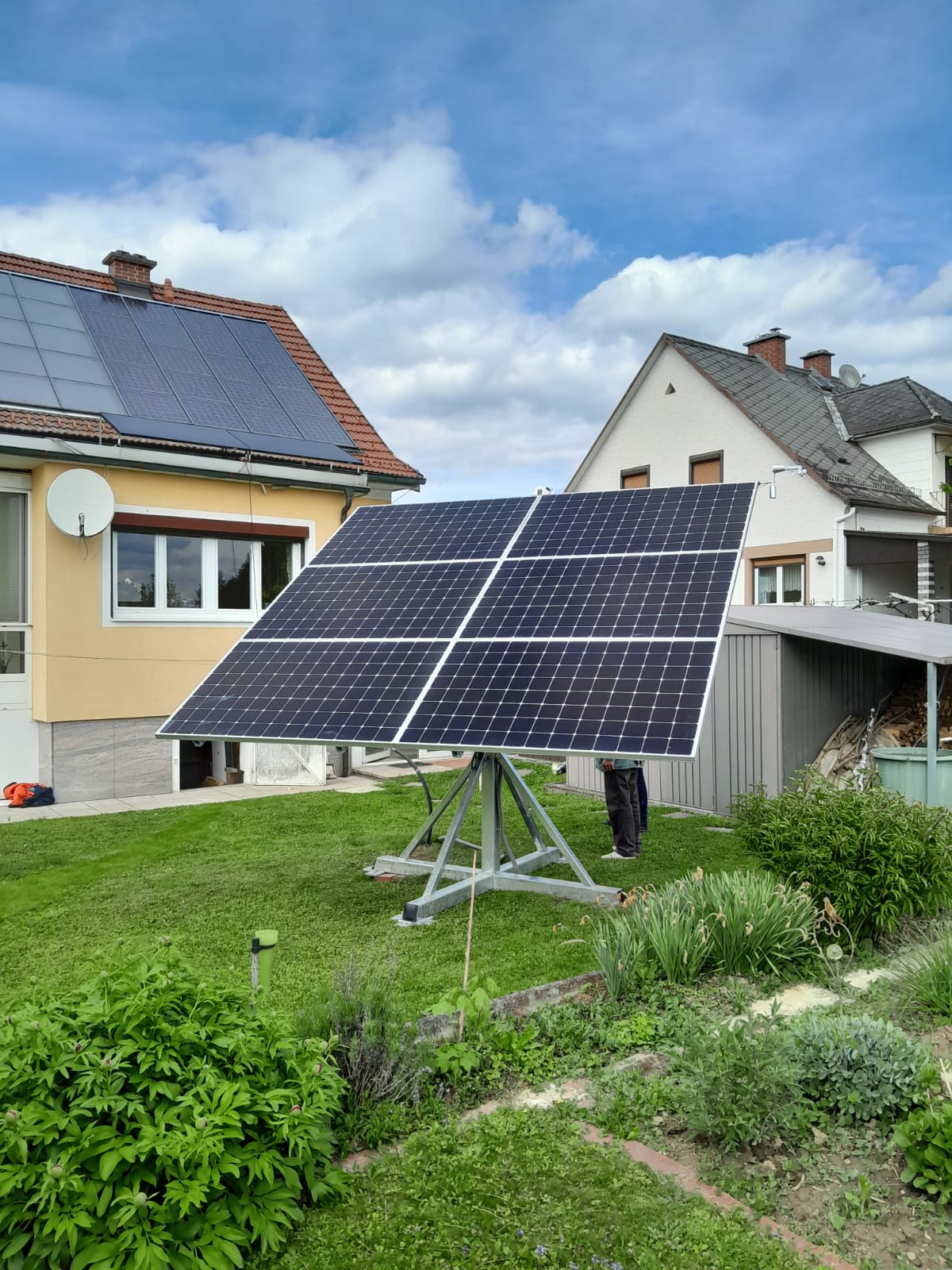 Montiert wurde ein Sonnenstromkraftwerk mit einem Suntracker 4000R mit Erdnägel, als Zusatz zu einer bestehenden Dachanlage. Weiters wurde der bestehende Energiespeicher BYD Battery Box Premium HVS 7.7kW nutzbarer Speicherkapazität um ein Speichermodul erweitert und der PV-Point für die Notstromversorgung wurde auf eine automatische 3-phasige Notstromfunktion verbessert. Alles zeitgerecht schlüsselfertig ausgeführt. Damit wird der Kunde Stromselbstversorger und ist auch für einen Blackout bestens vorbereitet.