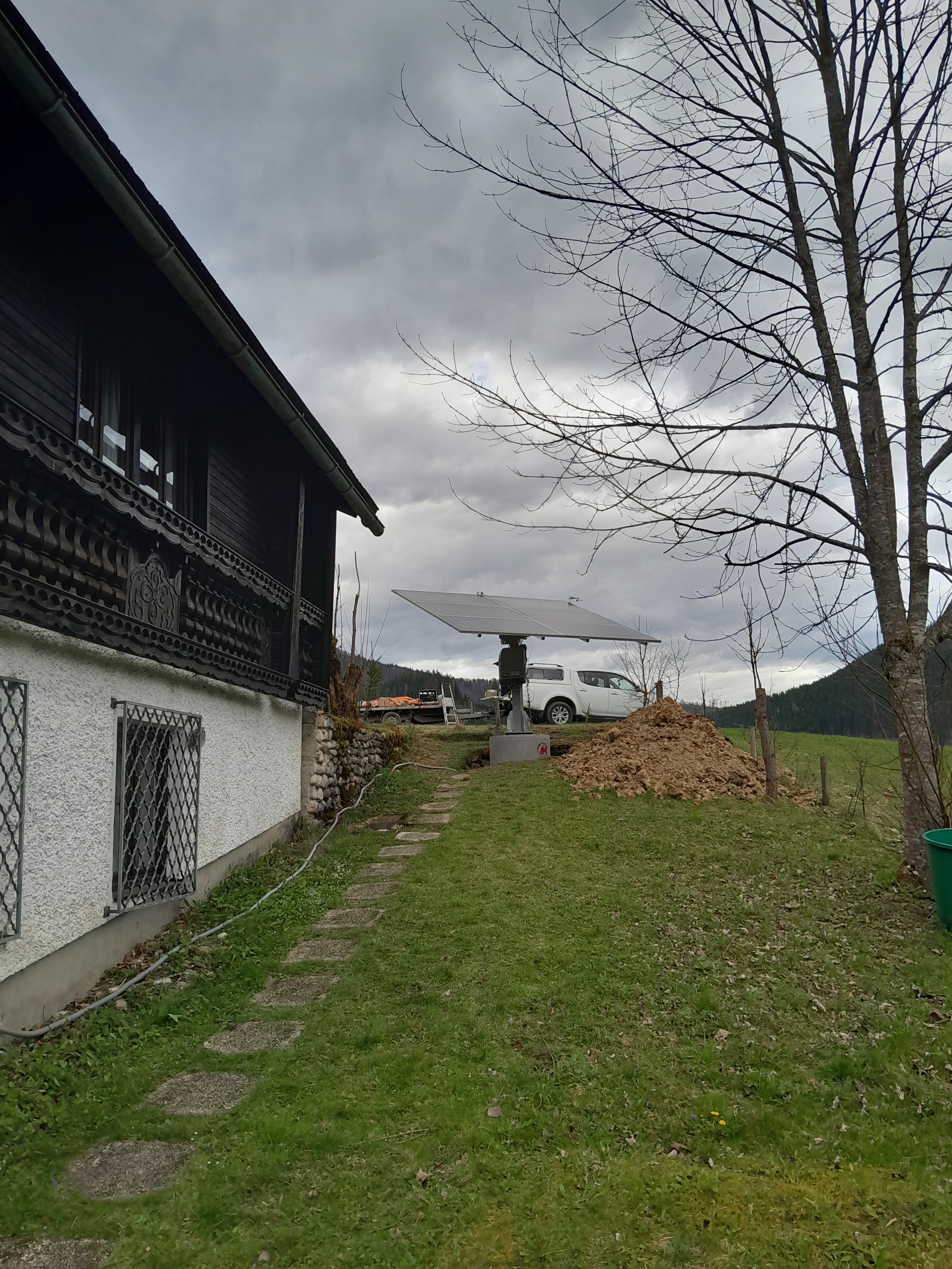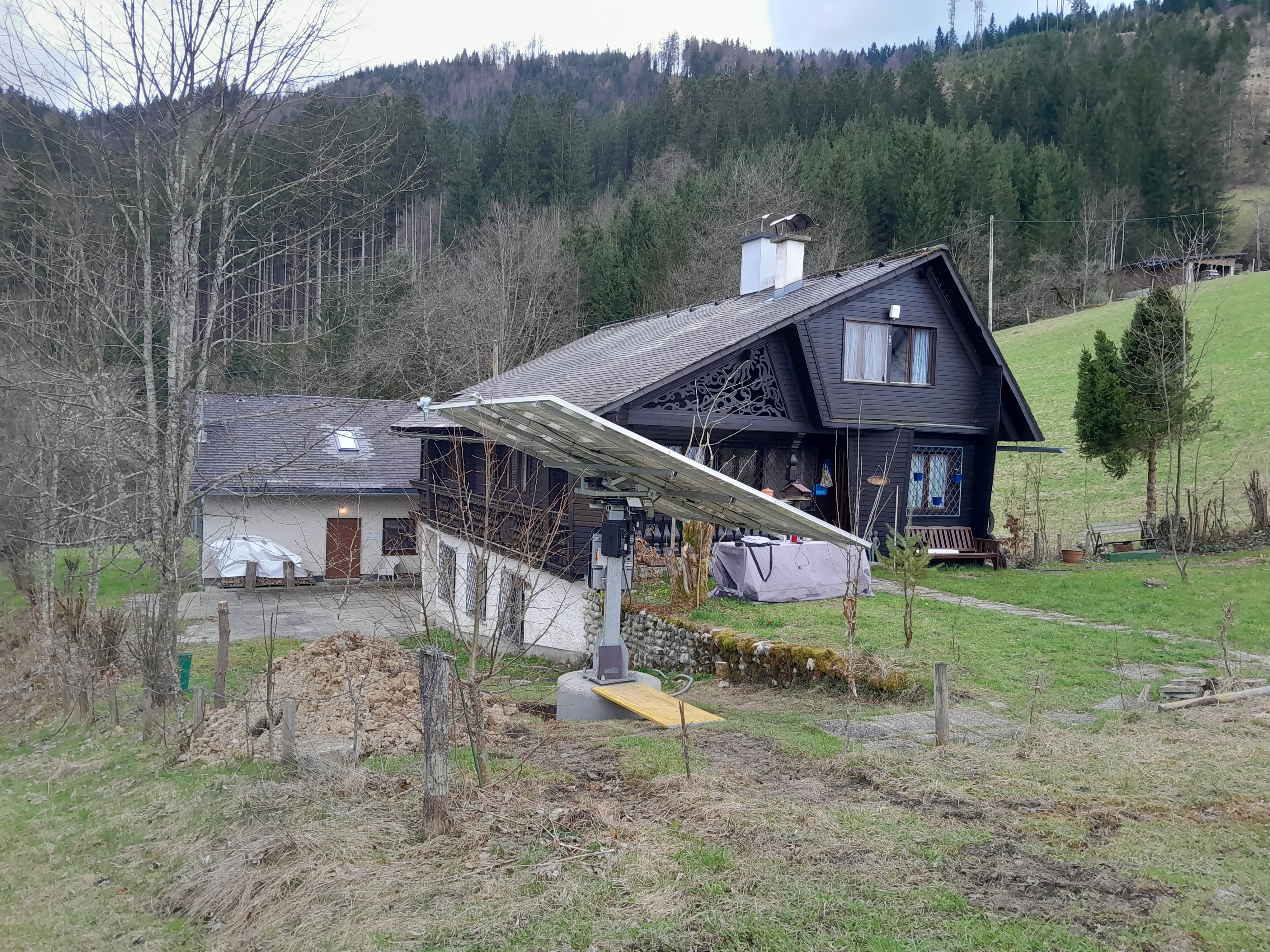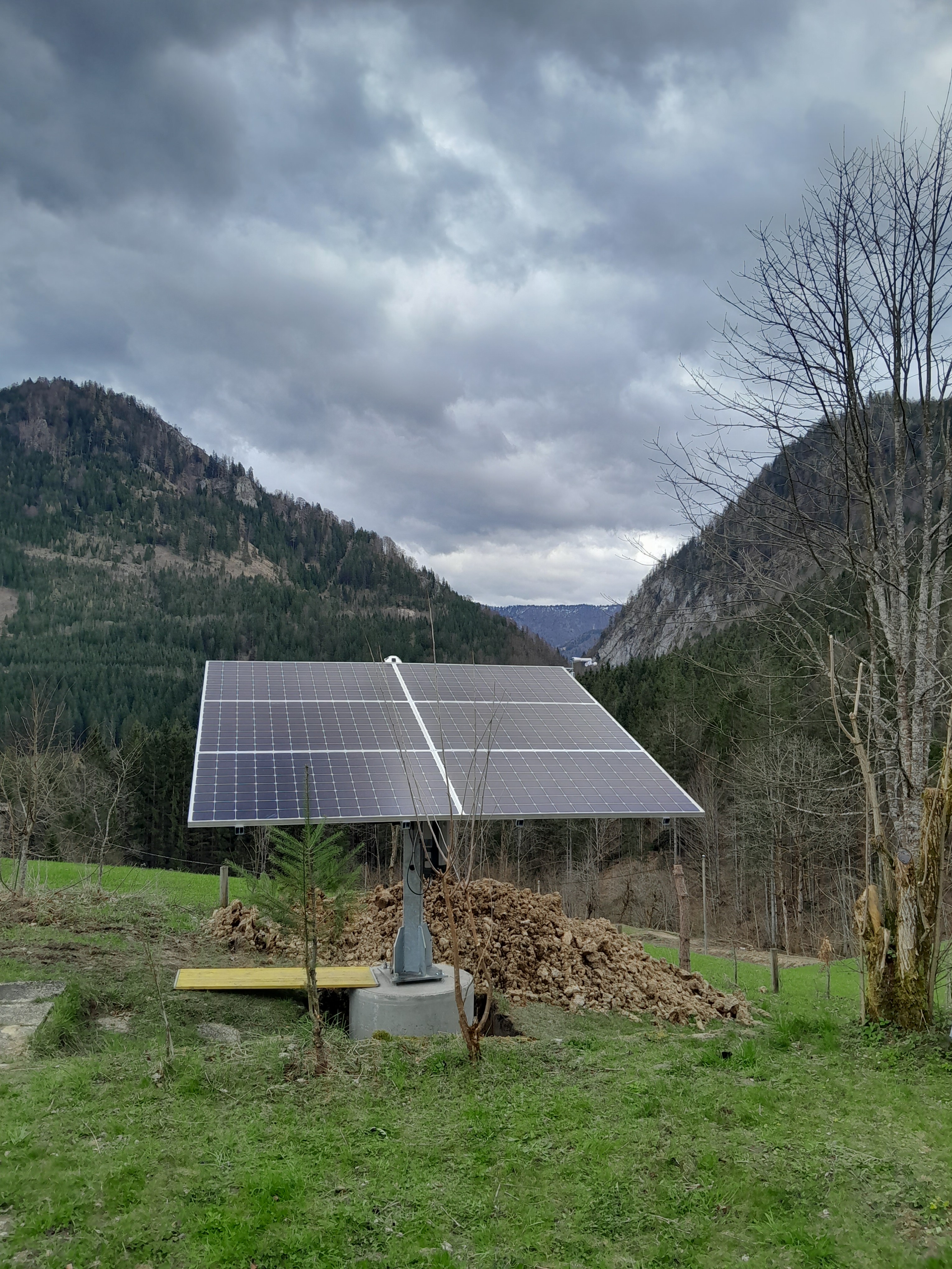 Montiert wurde ein Sonnenstromkraftwerk mit einem Suntracker 4000R auf einem Punktfundament. Außerdem wurde ein Fronius Ohmpilot zur Produktion von Warmwasser montiert und der Hausverteilerkasten adaptiert.